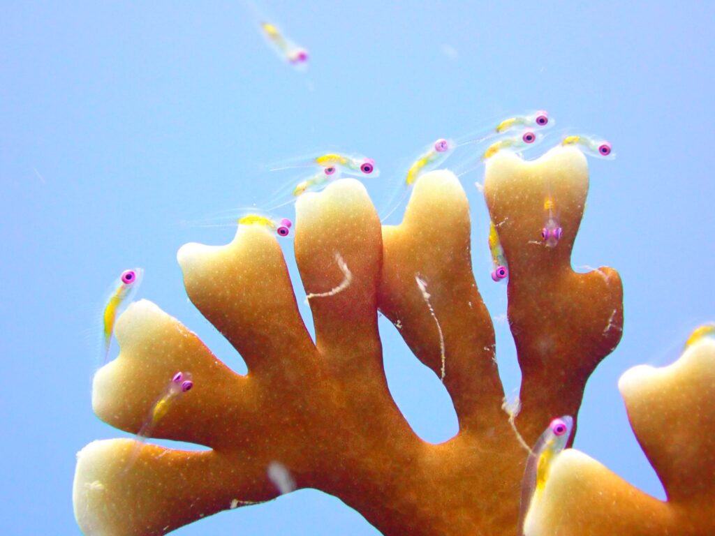 この時は流れが強くて、アカメハゼがぎゅっと集まっていたのだと思います。よくいる生物でも、数がたくさんいるところは特別感があるので普段から狙っています。TG6でホワイトバランスを合わせて撮りました。ホワイトバランスの取り方次第で色味が変わるので、日頃からたくさん試しています。自分の好みの色を見つけてみてください!